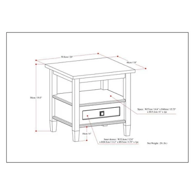 Good things really do come in small packages. Nothing could illustrate this better than the design of our Norfolk End Table which features one drawer and one open shelf providing plenty of storage space. The table is sized perfectly to allow room for a table lamp, book and family photos. A perfect companion to any sofa or arm chair.Efforts are made to reproduce accurate colors, variations in color may occur due to computer monitor and photography.