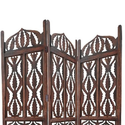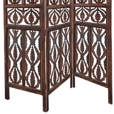 This traditionally designed 3 panel screen creates a great space in your home, office or dorm room. With the great craftsmanship, this screen is handcrafted from quality mango wood and MDF that are durable and easy to maintain. The brown finish and abstract carving will stunningly beautify your interiors. Use this room divider to create professional setups lawns and similar other places. It is sure to grab everyone’s attention and will be appreciated by many. Due to the handcrafted nature of the product, there may be variation in color, finish, wood grain and knots.