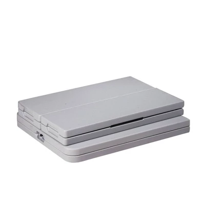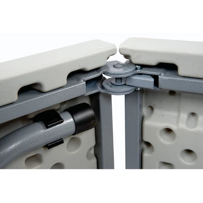 Our three-piece table and bench set is ideal for both indoor and outdoor environments. Heavy-duty blow-mold light gray resin top and seat for durability. Gray powder-coated tube framing built for long lasting use and lightweight portability. This lightweight set contains two fold-in-half benches and a 6’ fold-in-half table. Multi-functional for the office or the backyard, this durable resin set is perfect for any occasion!