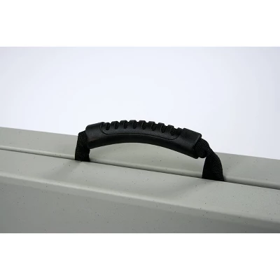 - Heavy-duty blow-mold light gray resin top and seat for durability and easy cleanup.