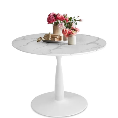 The Pop Maison modern dining table combined with sturdy metal pedestal base with a white Artificial marble top. The pedestal support base, not only beautiful but much more stable, were especially treated to be anti-rust and heavy-duty. It’s great for kitchen, patio, coffee, office etc. The pedestal structure design makes sure all the people around the table have enough space to put their legs in any comfortable position.