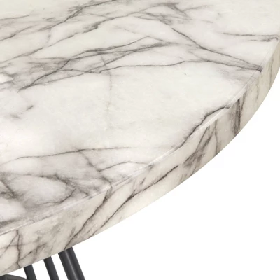 - Thick White faux marble top with variations of Gray veining throughout, 1.6-inch thick tabletop