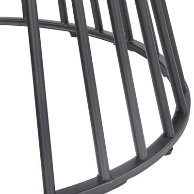 Mixed media cohesively comes together making a statement with the Indra Dining Set by Lifestorey. Simplicity and functionality combine to embody the faux marble top and black finished metal pedestal base. Industrial flare accentuates the metal base which allows for maximum design flow, while the thick top mimics real stone with distinctive gray tonal variations. Generously padded chair seats and backs with arms provide added comfort with a slender black metal frame.