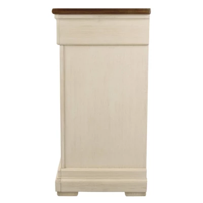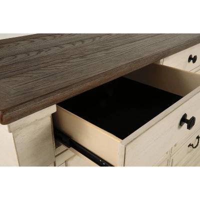 Whether your style is farmhouse fresh, shabby chic or country cottage, you’ll find this dresser dressed to impress. Its two-tone, gently distressed finish pairs weathered oak with antique white for that much more quaint character. The dresser’s nine smooth-gliding drawers are quality crafted with dovetail construction. Three felt-lined top drawers are another reflection of fine detail, inside and out. Signature Design by Ashley is a registered trademark of Ashley Furniture Industries, Inc.