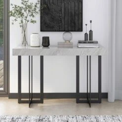 Expand your kitchen storage with this farmhouse inspired Doria Baker Rack from miBasics. Rich tones blend with a faux marble top to present an impressive palette. Warm vintage red brown stands out as a lush finish that accents any space. Enjoy the linear design of crossed cabinet door fronts in a barn-inspired design. The faux marble top is great for storing small appliances or it can be used as a food prep area.