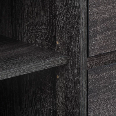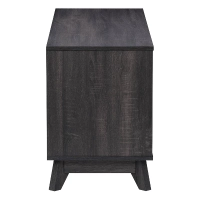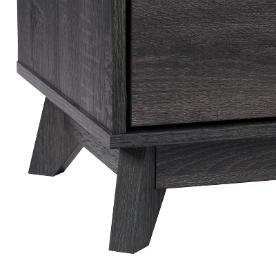 Take your living room to the next level with this stylish modern TV stand. Made with flared wood legs, four drawers, and four open shelves for a mid-century modern appearance. This entertainment center creates additional storage space in your home for media, electronics, accessories, books, or decor. The beautiful rich wood grain finish looks great in any aesthetic. This bench fits most TVs up to 55″ and is the perfect combo of classic colors and modern lines.