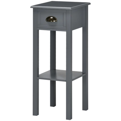 Add a beautiful accent piece to your home while giving yourself extra storage with this narrow end table from HOMCOM. Place the end table in your living room or bedroom to hold items you use daily or as a decorative display shelf. The drawer allows you to store small objects without getting lost. It’s compact enough to fit between those tiny spaces between your couch or bed and the wall. Add elegance and some extra storage with HOMCOM.