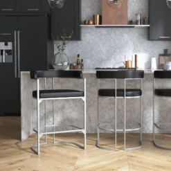 Cannonwood Half Moon Shape Metal Upholstered Back Counter Height Stool Silver – Hillsdale Furniture