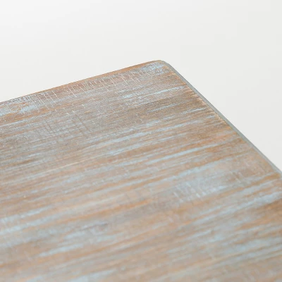 Looking for the perfect addition to your home bar or living space? This cabinet is just what you need. With a built-in wine rack that can hold up to thirteen bottles, you can keep all of your favorite wines in one convenient place. The classic windowpane design door opens up to reveal a shelf that divides the cabinet space into two, which is perfect for storing wine glasses, cocktail napkins, and extra dishes. The open shelf is great for books, glasses, or other drinkware. With a charming shabby-chic design and a distressed blue-gray and white finish, this wine and storage cabinet is a beautiful addition to any home. It’s made from a combination of fir and engineered wood, giving it a sturdy and rustic look that you’ll love.