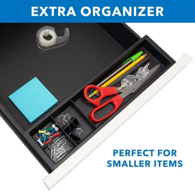 - Three drawer sizes to organize your office materials