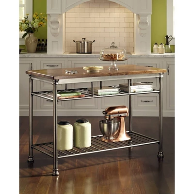 Orleans Kitchen Island Stainless Steel Base With Wood Top Brown – Homestyles