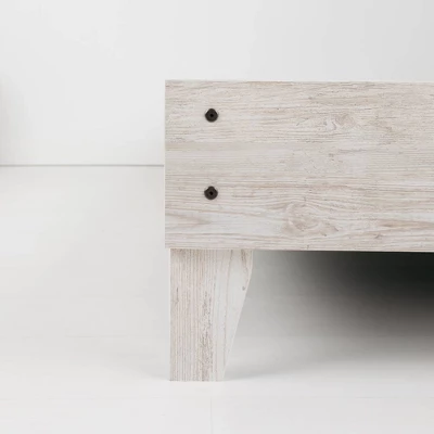 Give provincial a new meaning with the chic look of this queen platform bed. The white wash distressed finish keeps this piece light and fresh, as does its minimalist aesthetic. Signature Design by Ashley is a registered trademark of Ashley Furniture Industries, Inc.