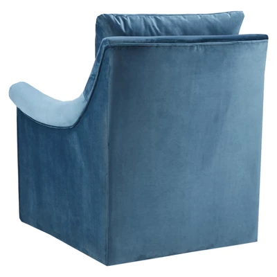 The curved arms and straight back of the Sparta Swivel Chair adds a touch of glamour to any space. A high-density foam filling and solid wood frame provide exceptional comfort and support, while the swivel feature allows the lounge chair to rotate on its base. Upholstered in a velvet fabric, this swivel chair will make an eye-catching piece in your home. No assembly required.